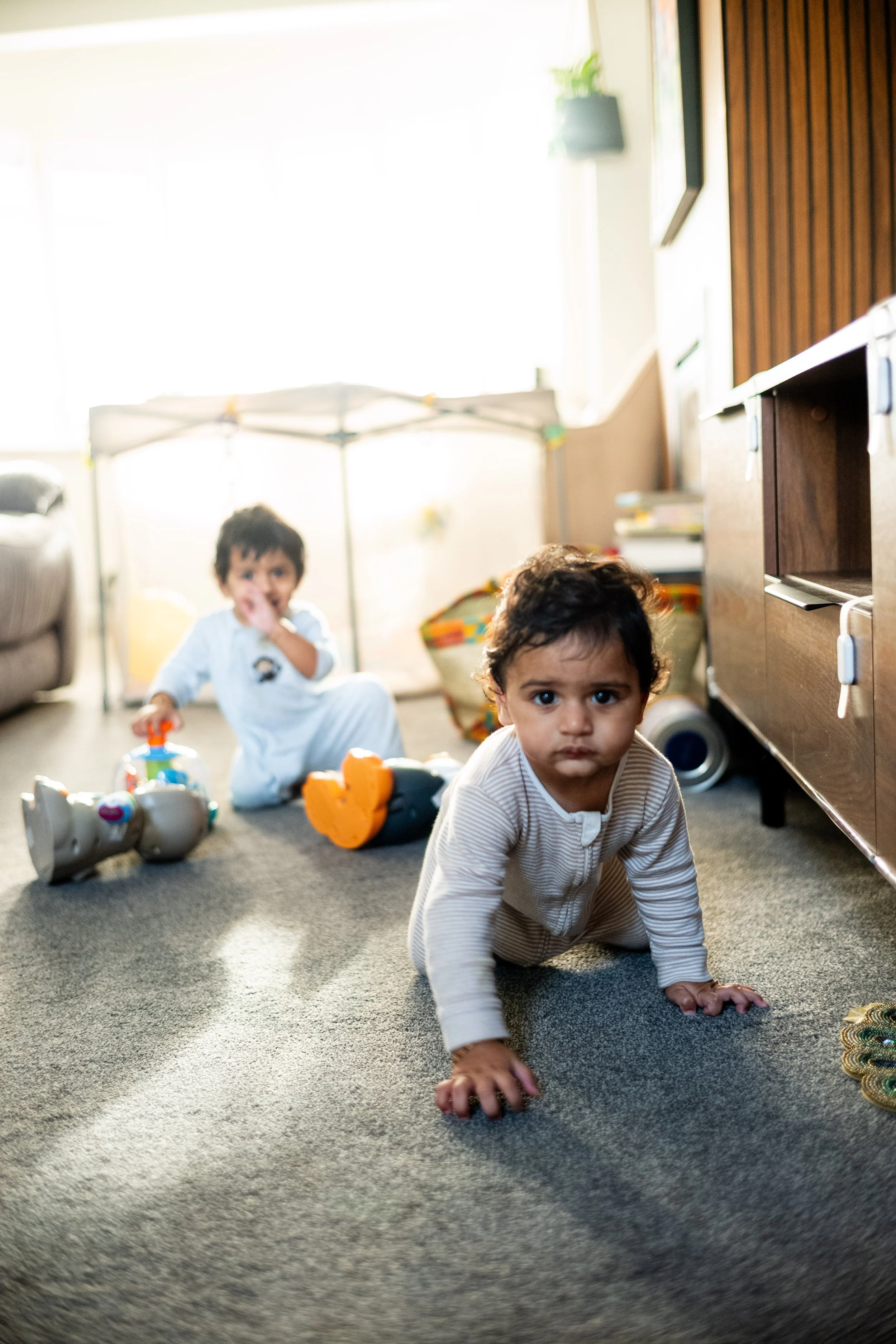 My approach is documentary-led with a considered eye, shaping light and composition, without interrupting the rhythm of your family. I guide when needed, but I never force a moment. That’s why I photograph children at home, where they feel safest, freest and most themselves. There’s no pressure to sit still. No forced smiles. No performances, just play, movement and connection.